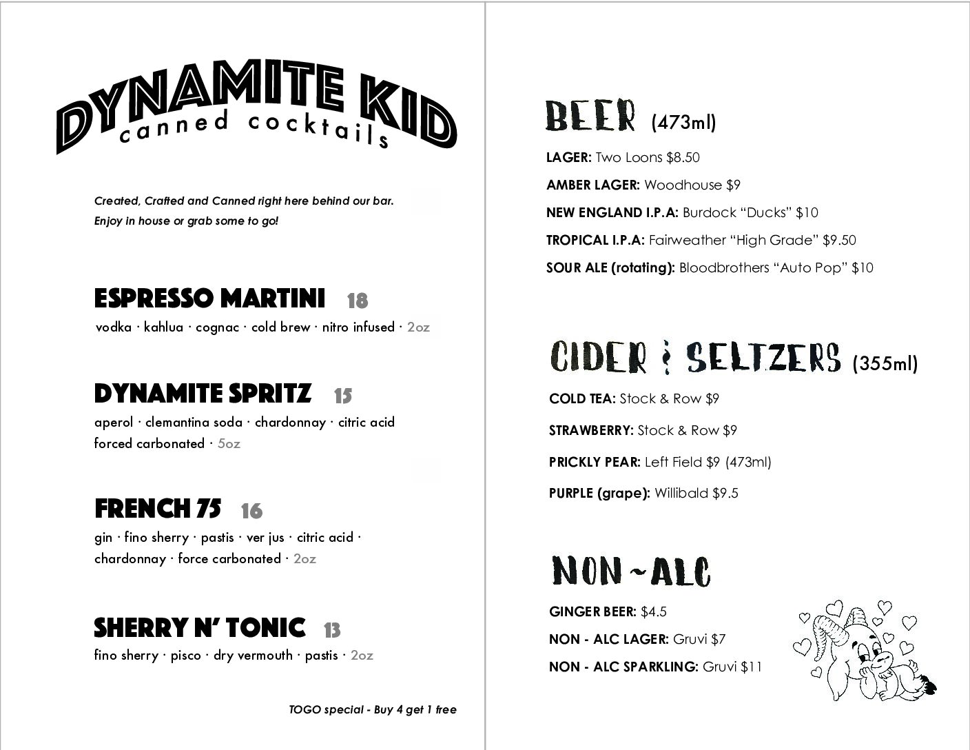 ; Pinkerton’s Snack Bar: Properly loud and raucous, this is the east end’s most happening bar. Classic cocktails, Ontario beer and thoughtful finger food, too. – Globe & Mail Menus Dynamite Kids Hours Open for dine-in & take outTuesday – Sunday: 5pm – 2am Location 1026 Gerrard St EToronto, ON M4M 1Z5